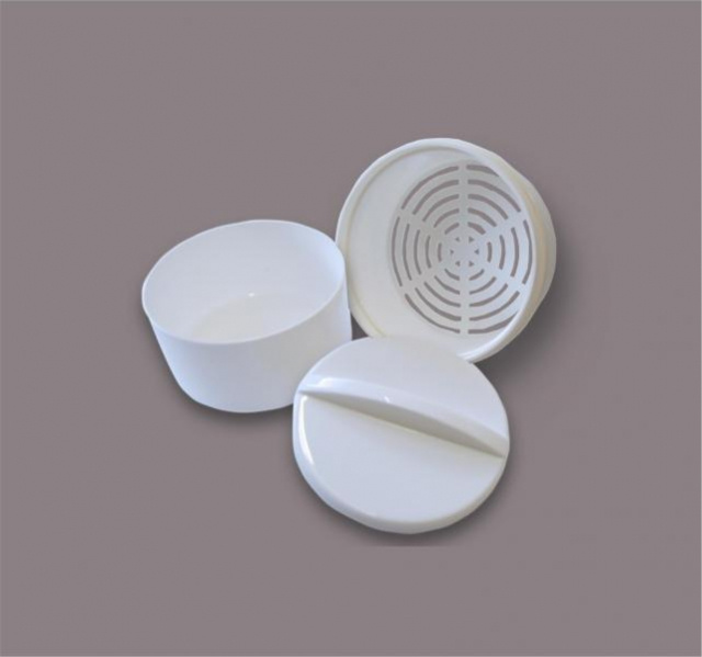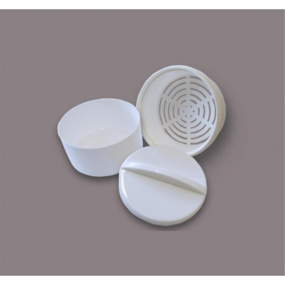 Velikost dentální dózy: průměr 98 mm, výška 72 mm. Víceúčelová dentální dóza určená k odkládání a čištění zubních protéz a dětských rovnátek. Dostupná v několika barevných kombinacích. Skládá se ze 3 částí – misky, ponorného sítka a víčka