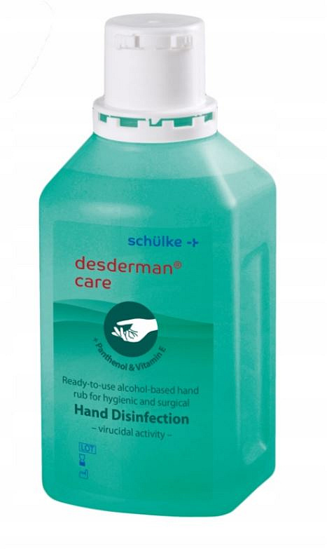 Hygienická dezinfekce rukou (EN 1500): aplikujte minimálně 3 ml přípravku desderman® care do suché pokožky rukou tak aby byla pokožka důkladně zvlhčena a vtírejte po dobu nejméně 30 sekund.