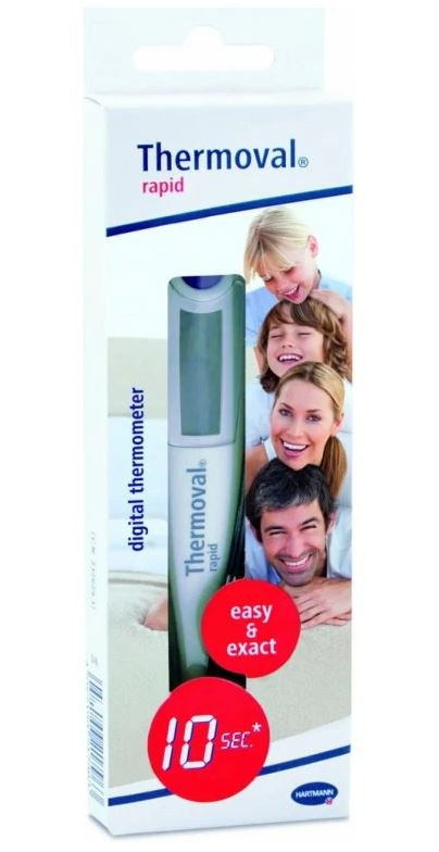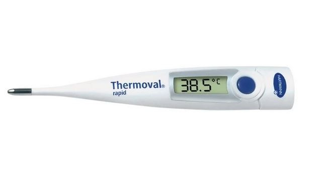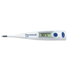 Digitální klinický teploměr poskytující výsledky měření v několika sekundách.