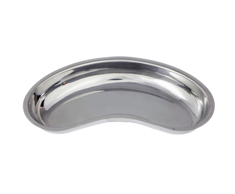 Nerezová emitní miska pro odkládání lékařských nástrojů nebo pro sběr tělesných tekutin ve tvaru ledvinky vyrobená z kvalitní nerezové oceli.