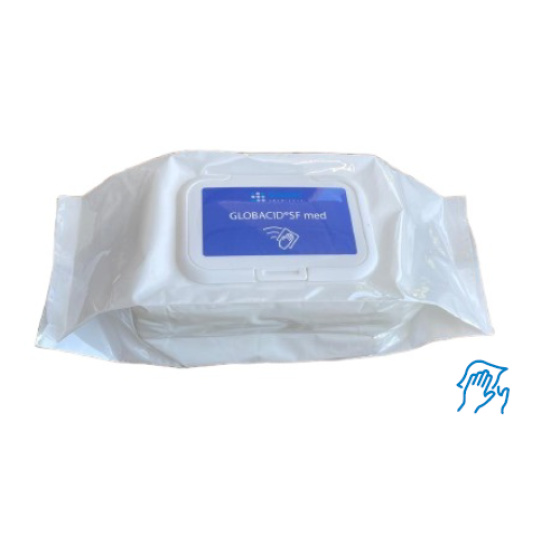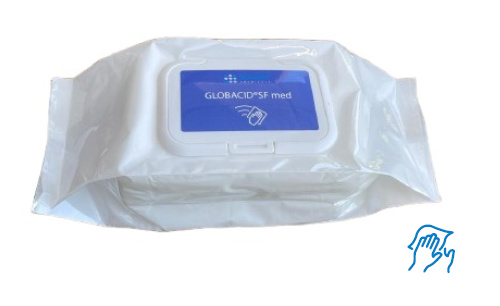 ubrousků, zavřete víčko. Dezinfekční prostředek GLOBACID®SF MED WIPES je vhodný na