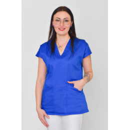 Dámská zdravotnická halena bez motivu potěší snad všechny zdravotníky napříč obory. O Váš celodenní komfort se stará velmi příjemný, na omak měkký materiál. Střih je v pase mírně projmutý, s výstřihem do V a dvěma velkými kapsami na nezbytné nutnosti. Tento model se skvěle hodí do všech nemocničních oddělení, lékáren i laboratoří, ale i rehabilitačních center či škol. Halena je ručně šita z bavlněného saténu, který je velice příjemný na omak, ale i funkční a méně mačkavý. Tento motiv je možné zakoupit i jako šaty, halenu s 3/4 rukávem či operační čepičku.
