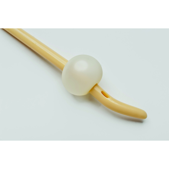 Speciální Tiemann zakončení s kuželovou špičkou a dvěma laterálními očky usnadňuje zavedení i při zúžené uretře