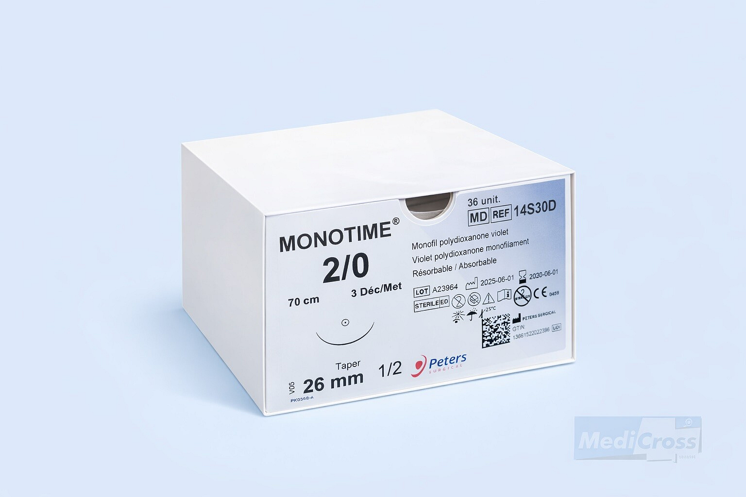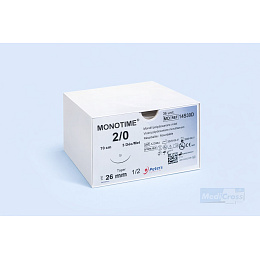 Popis MONOTIME, USP 2/0, jehla 26mm, 1/2kruh, taper, 75cm, fialové (36ks/bal)