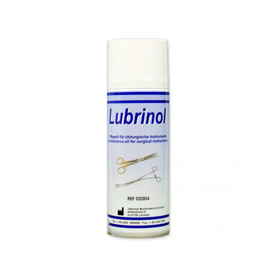 Lubrinol je nástrojový sprej pro pečlivou údržbu chirurgických nástrojů, různých nástrojů a zařízení, včetně mazání částí kloubů. Lubrinol používejte k postřiku čištěných nástrojů ze vzdálenosti 20-30 cm. Validován pro parní sterilizaci při 134 °C po dobu 3,5 minuty po aplikaci.