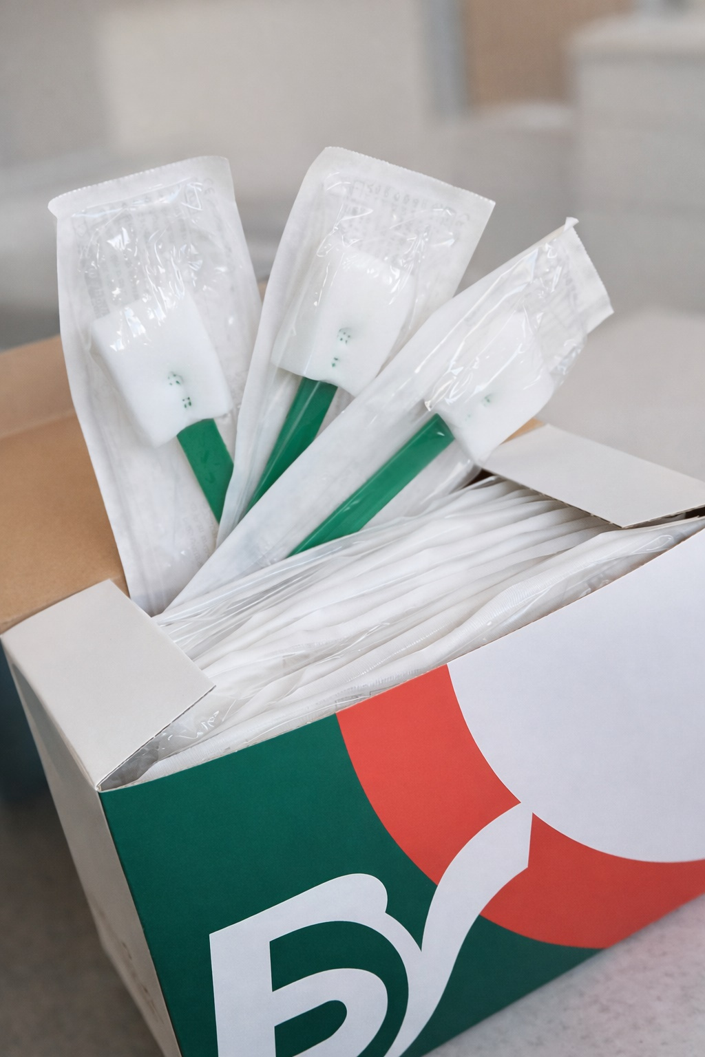 K aplikaci dezinfekčních prostředků na pokožku. Pěnová hlavička o rozměrech 40 x 20 x 50mm na plastové tyčince dlouhé 170mm