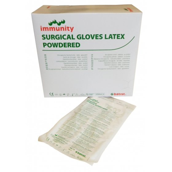 Popis Rukavice IMMUNITY latex s pudrem sterilní vel. 8,5 (50párů/bal)