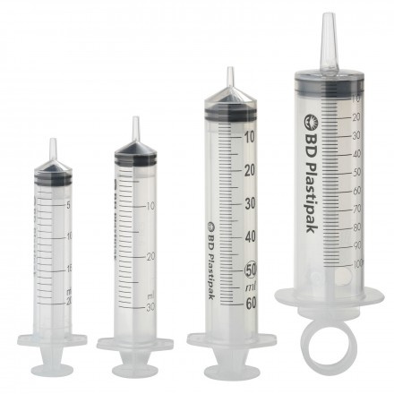 Sterilní stříkačka BD Plastik s gumovým pístem pro plynulé a přesné dávkování.