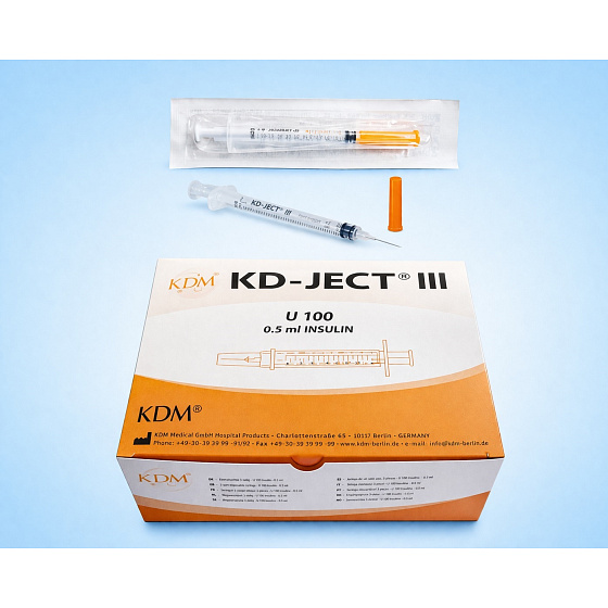 Inzulínová stříkačka KD-JECT III o objemu 0,5 ml (U-100) je určena pro přesné dávkování inzulínu při každodenní aplikaci. Díky pevně integrované jehle o rozměru 0,30 × 8 mm minimalizuje ztráty léčiva a zajišťuje komfortní aplikaci s menší bolestivostí.