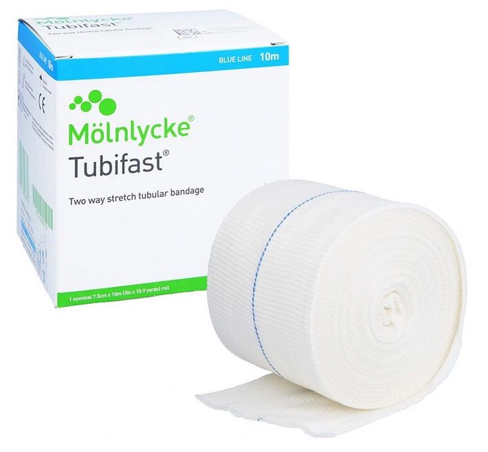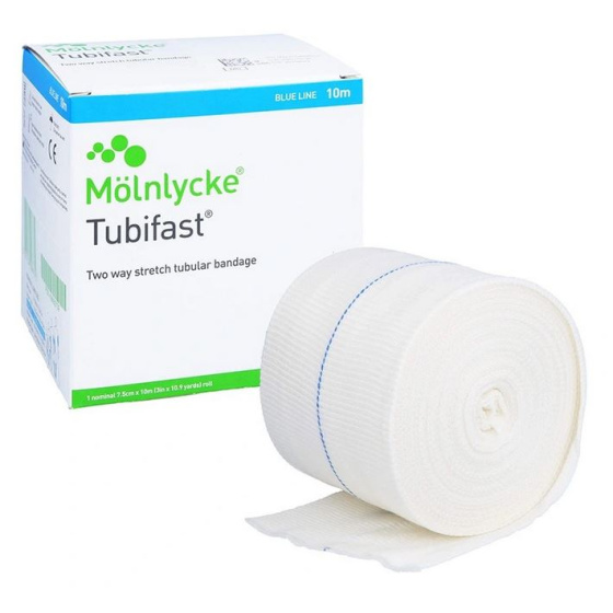 Tubifast od Mölnlycke je lehká elastická tubulární bandáž s technologií 2-Way Stretch, navržená pro fixaci obvazů a krytí rány a jako pružný návlek pod sádru. Díky unikátnímu materiálu s dvojitým směrem natahování se snadno přizpůsobí anatomii těla a zajišťuje pevné, ale neškrtící upevnění bez použití pásek či špendlíků.