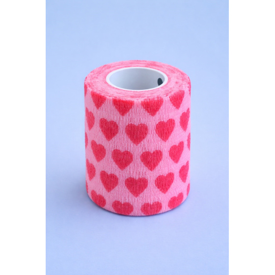 Popis yellowBAND kohezivní bandáž 5cm x 4,5m, růžová srdíčka (12ks/bal)(288ks/kart)