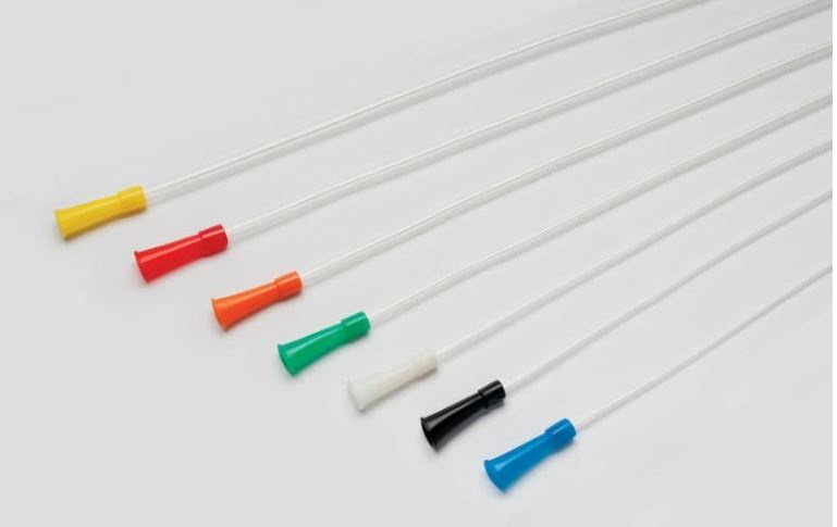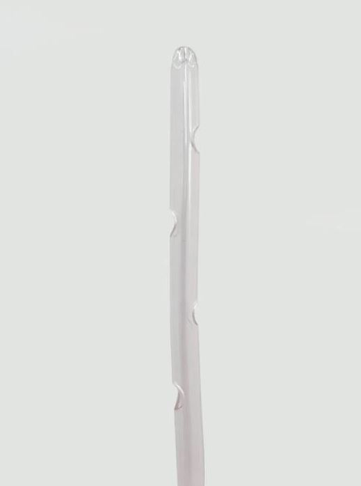 Atraumatická zaoblená špička s centrálním a bočními otvory minimalizuje riziko podráždění sliznice.